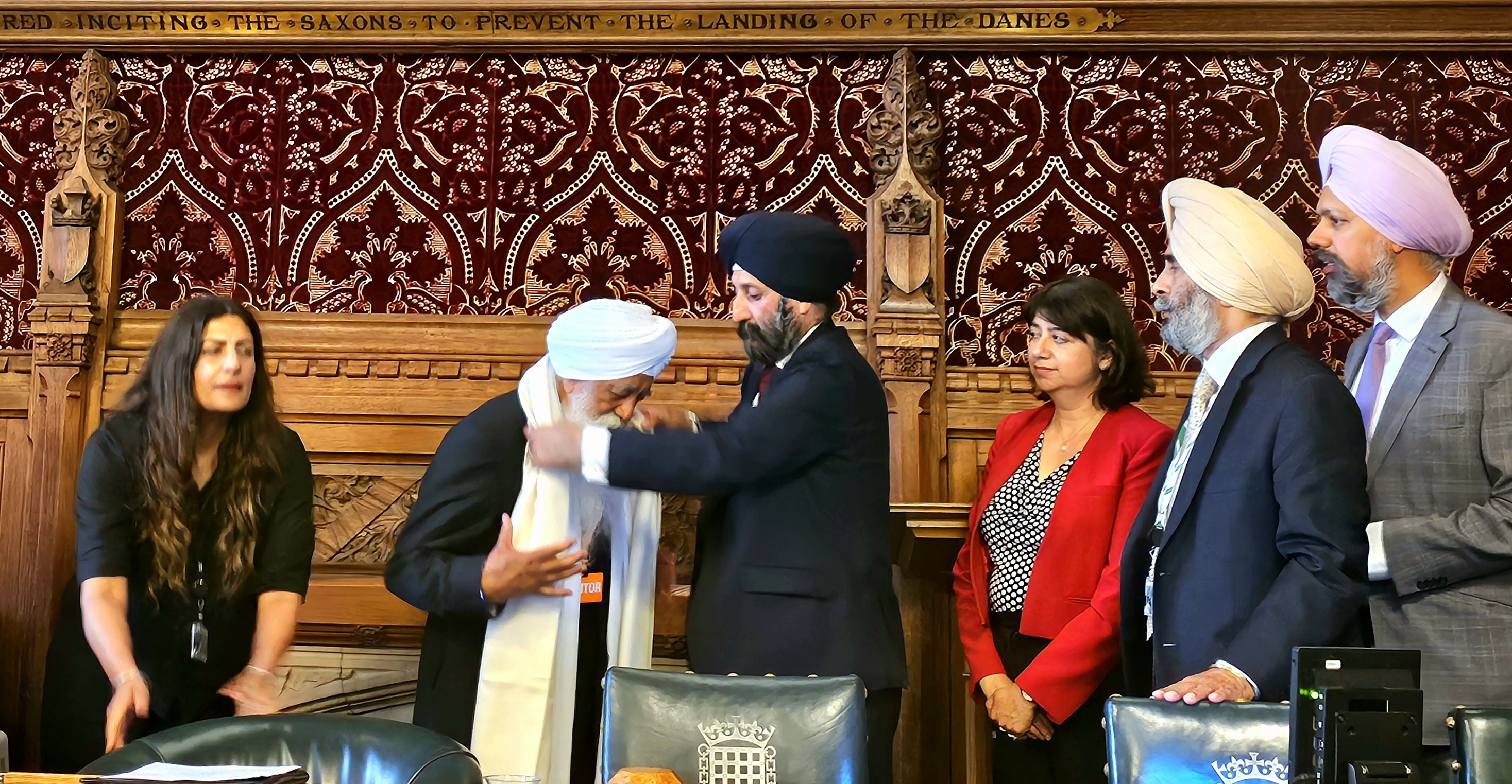 In a deeply moving and historic gathering at the House of Commons, Parliamentarians, interfaith leaders, and members of the Sikh community came together to honour Bhai Sahib Professor Mohinder Singh Ahluwalia OBE KSG for his lifelong selfless service to humanity. Bhai Sahib Ji was accompanied by his wife Mata Baldev Kour and loving family. Hosted by Gurinder Singh Joshan CBE MP. The event started with Keertan, spiritual music of sacred Sikh scripture by selfless volunteers. This was followed by the MPs bestowing a “Siropa” to Bhai Sahib Ji as a Sikh traditional gesture of welcome and respect. This set the scene for a deeply emotional, spiritual gratitude and reverence inspired ceremony.